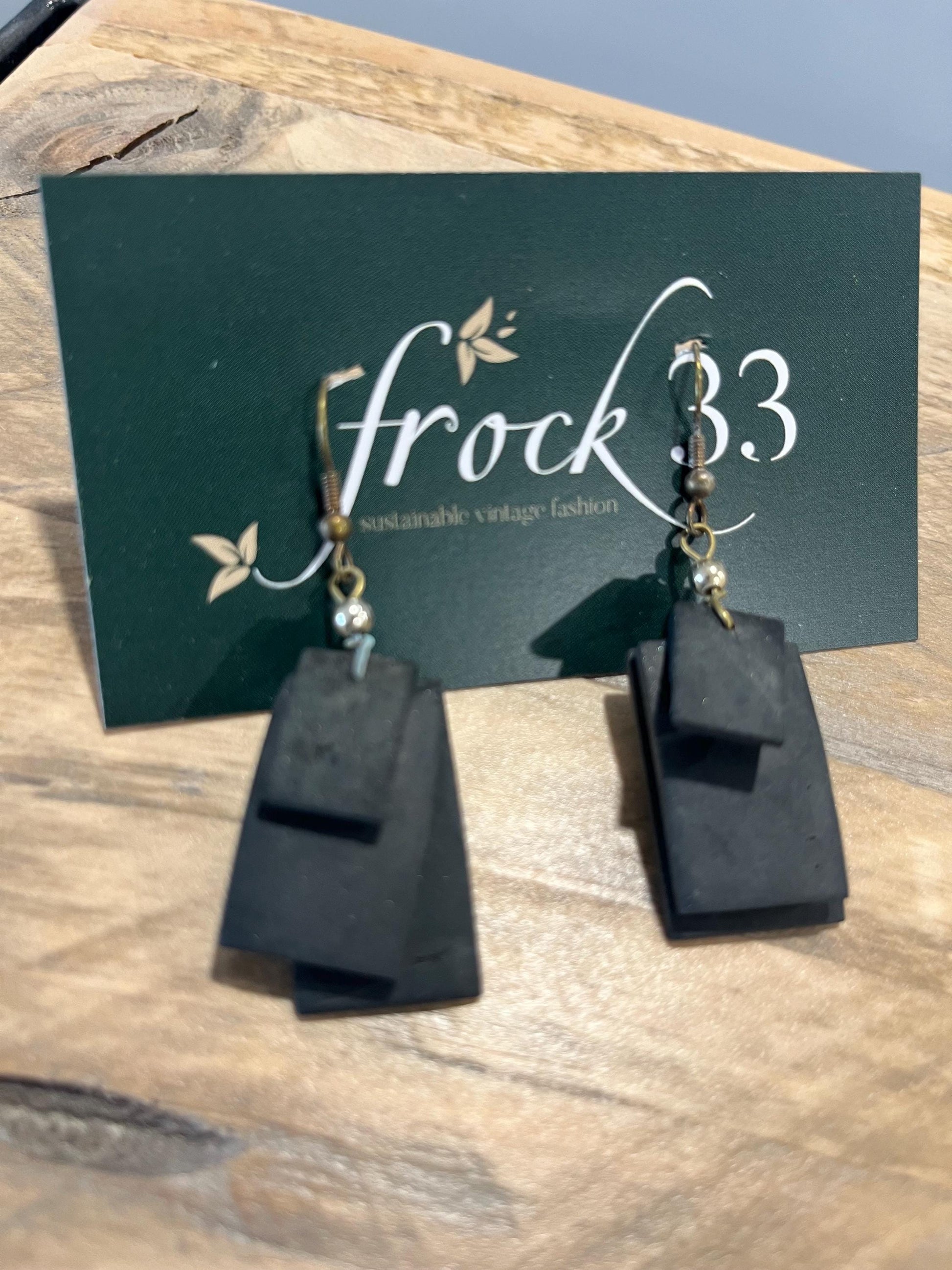 Step back in time with these iconic early 90s vintage earrings! Featuring stacked black rectangle shapes with a sleek, hook, these earrings exude classic retro charm and are perfect for adding a bold statement to any outfit. Whether you're styling a 90s-inspired look or want to bring some vintage flair into your modern wardrobe, these earrings are a must-have accessory!