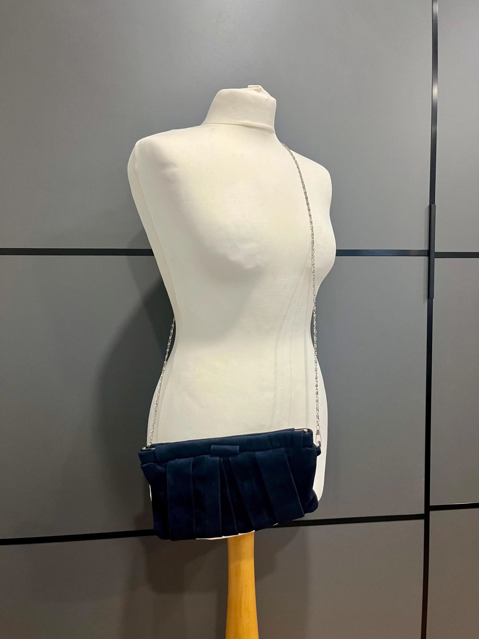 Style: Cllutch or shoulder crossover bag with detachable silver chain strap