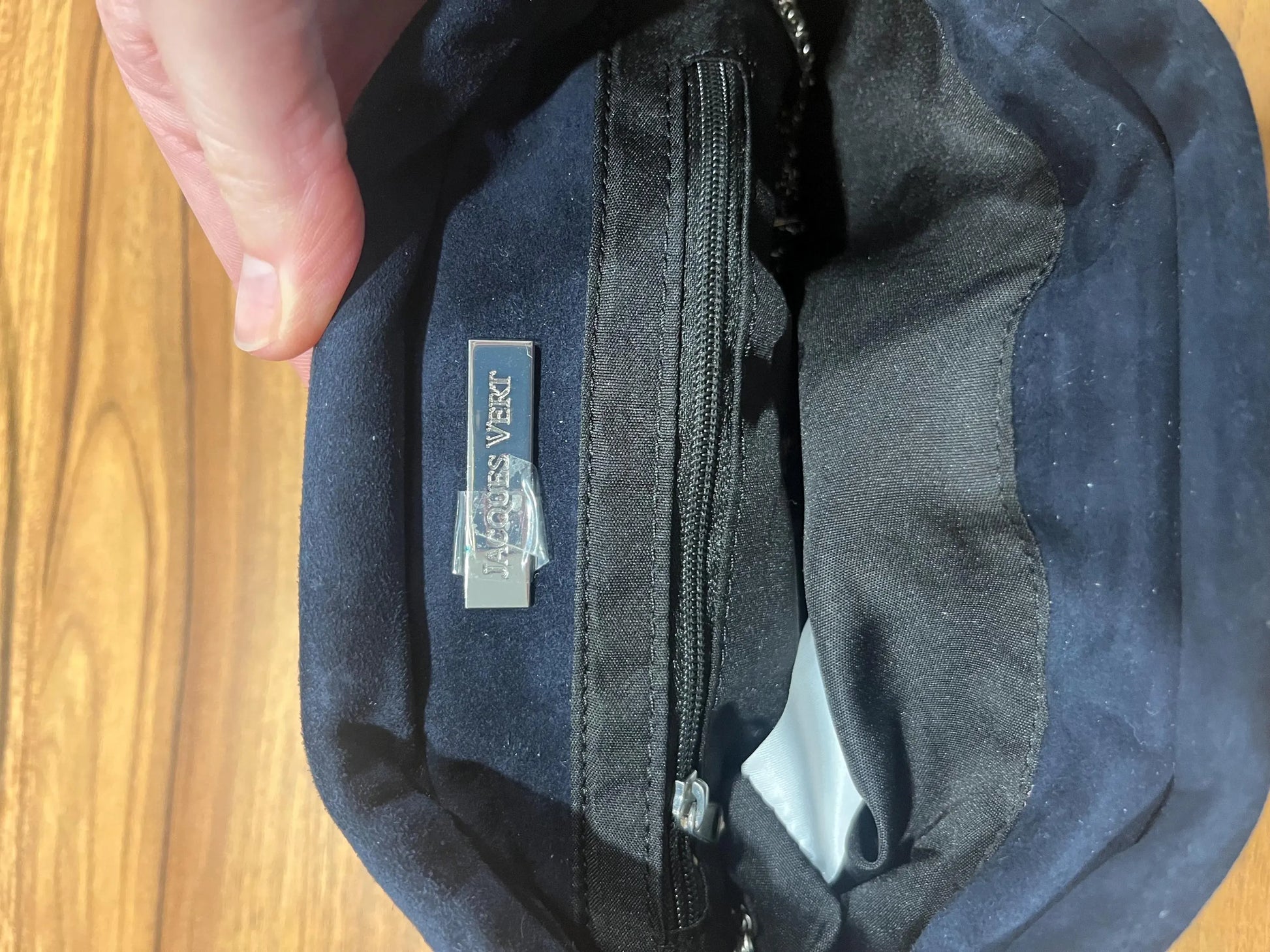 Vintage Jacques Vert navy suede clutch, 90s era (or early 2000s), suede material, compact size and excellent vintage condition