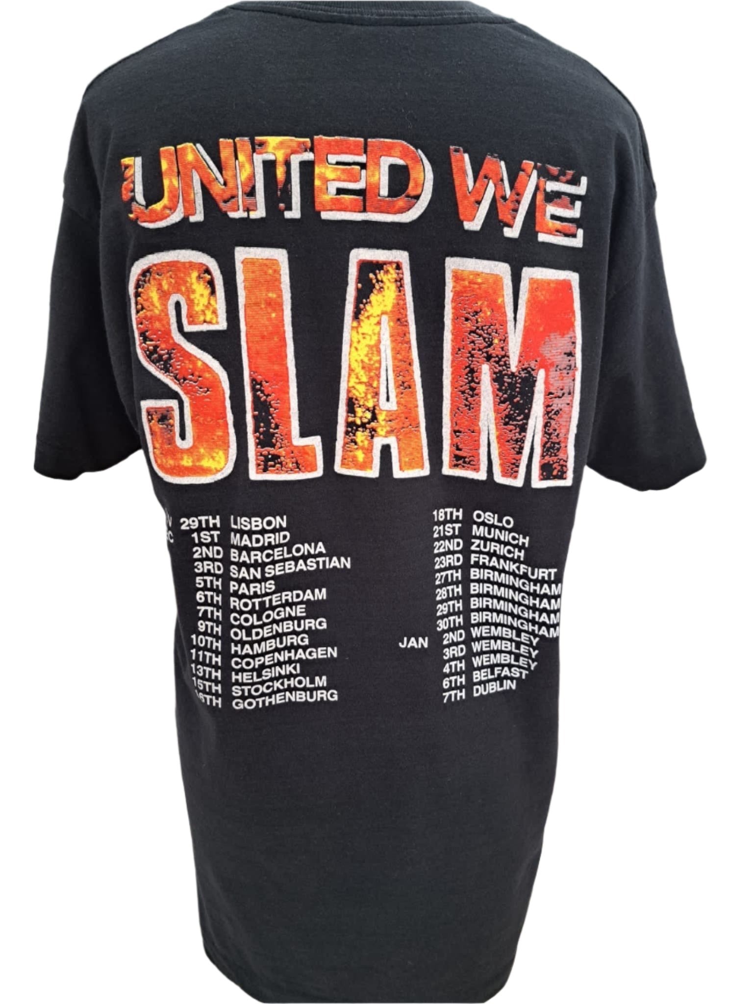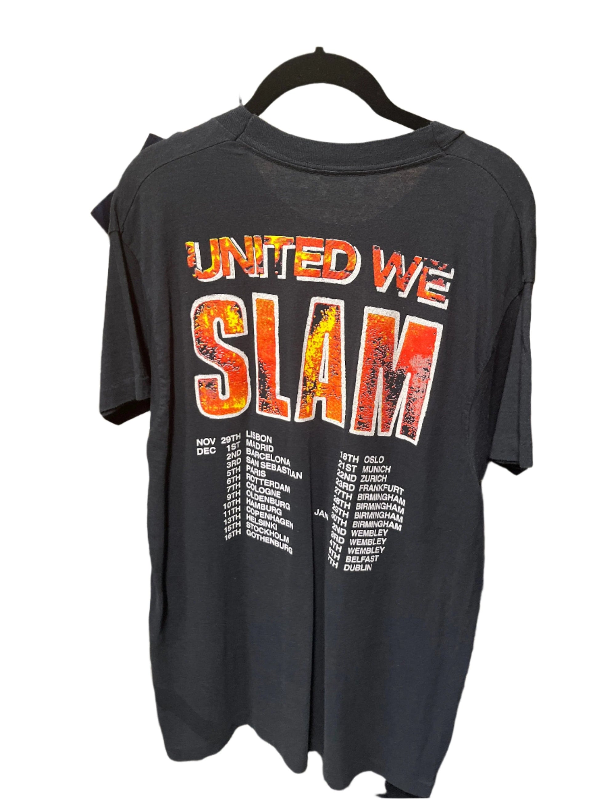 A true vintage gem for music lovers and collectors! This Dan Reed Network T-shirt is from their iconic 1989 United We Slam Tour, featuring the full list of Europe and UK tour dates on the back. It’s a rare find that captures the essence of 80s rock and the energy of their live shows.