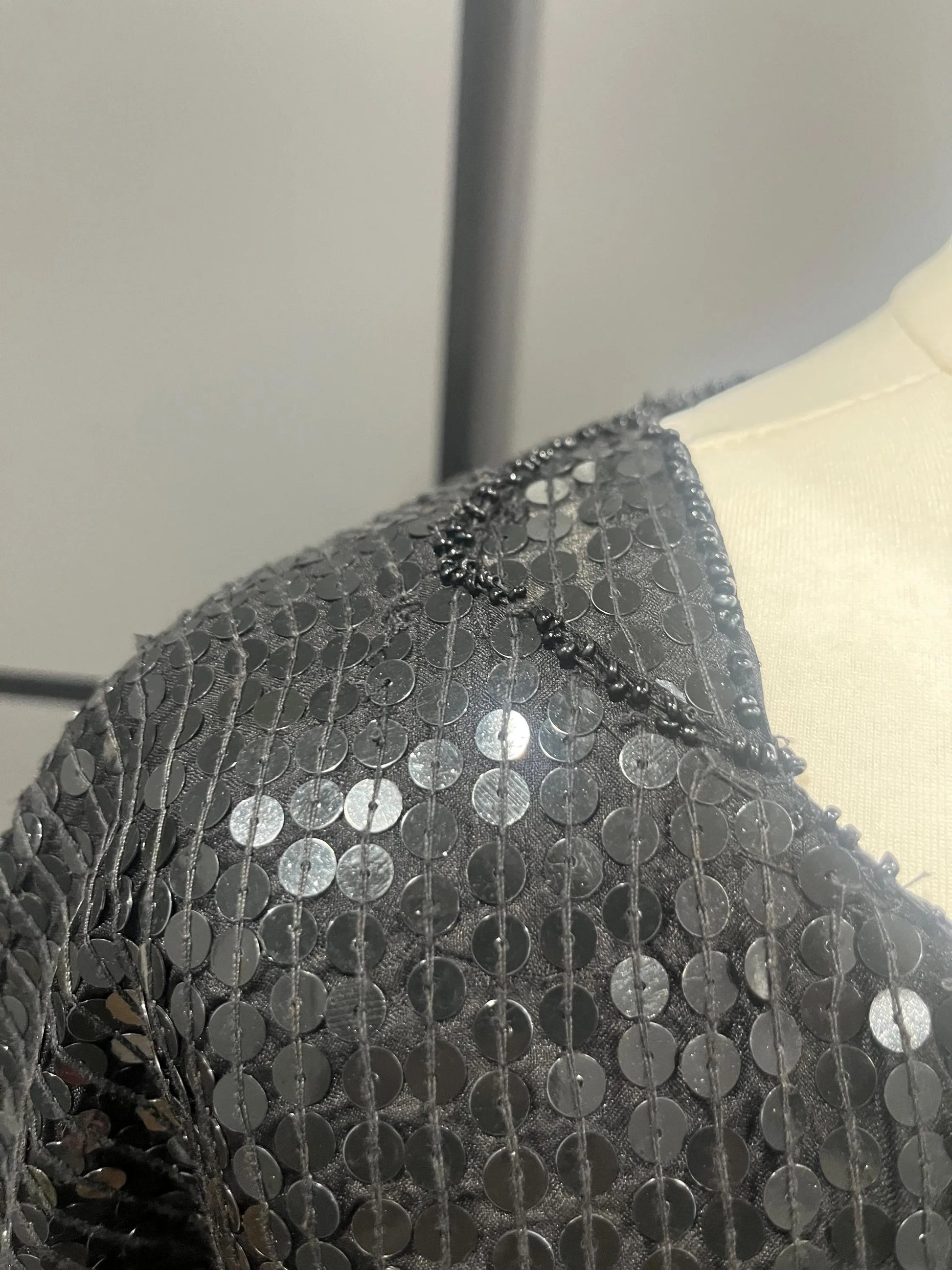 Shine at every party with this vintage 1980s sequin top! Perfect for evening events, cocktails, or special occasions, this statement piece combines bold sparkle with lightweight comfort.