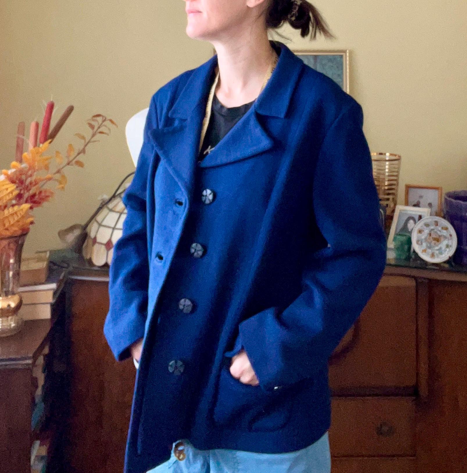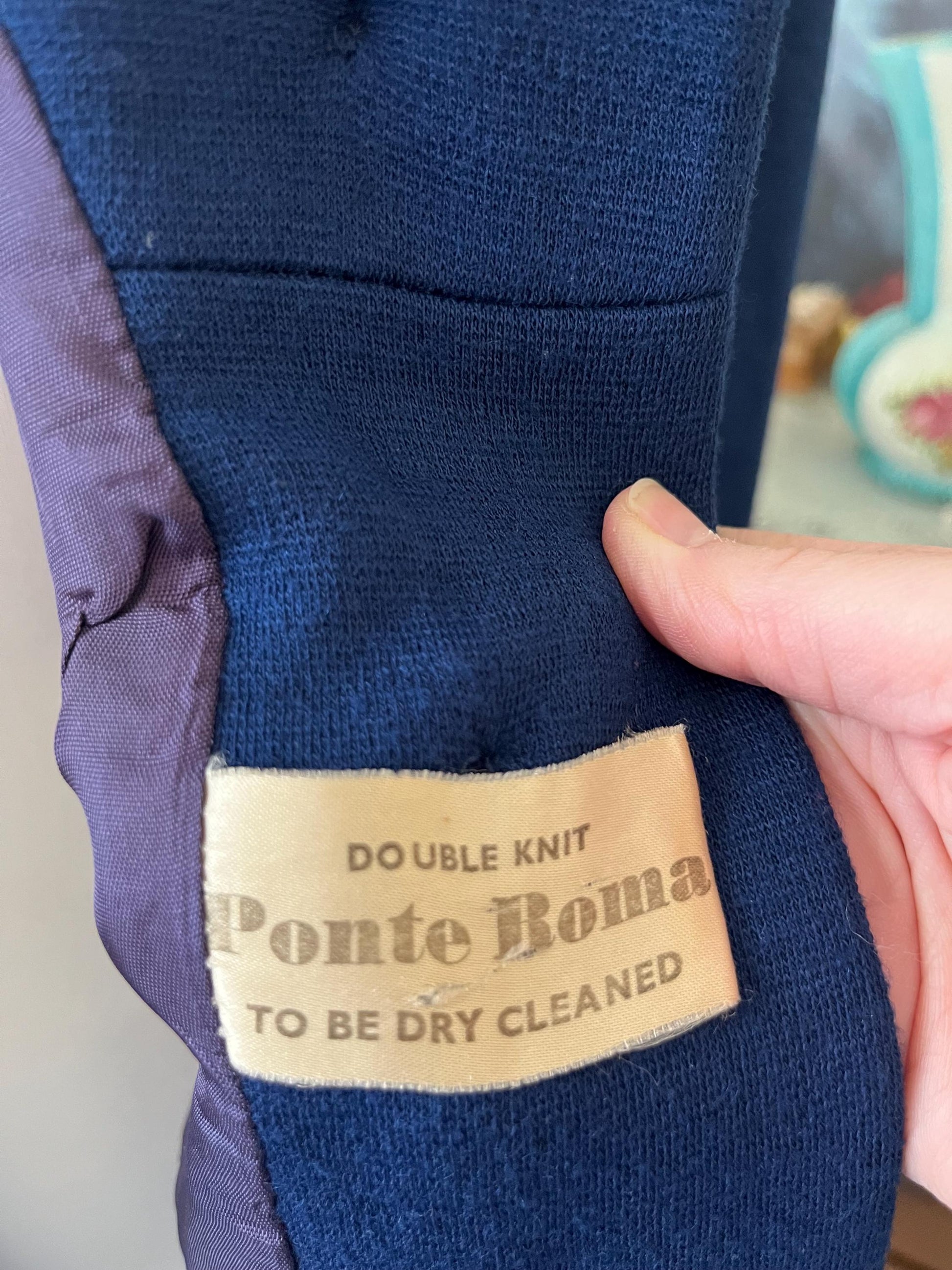 Vintage clothing-1970s Vintage Blazer Jacket Navy dark blue - Italian blazer - Double Knit Wool Blend - Size 12